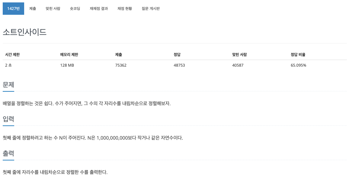 - 이 정수의 각 자리수를 내림차순으로 정렬한다.