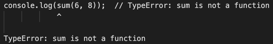 console.log(sum(6, 8)); // TypeError: sum is not a function