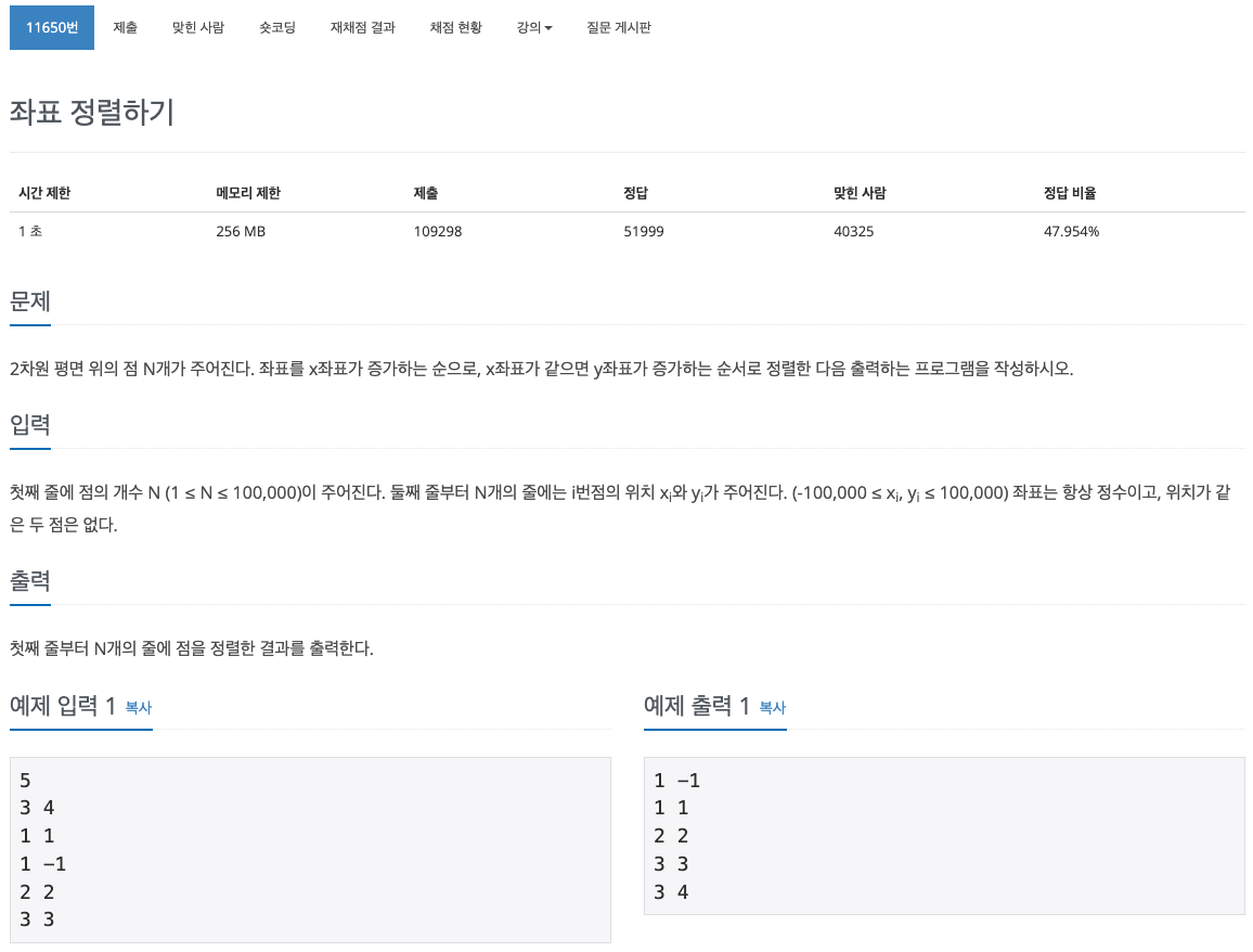 https://www.acmicpc.net/problem/11650