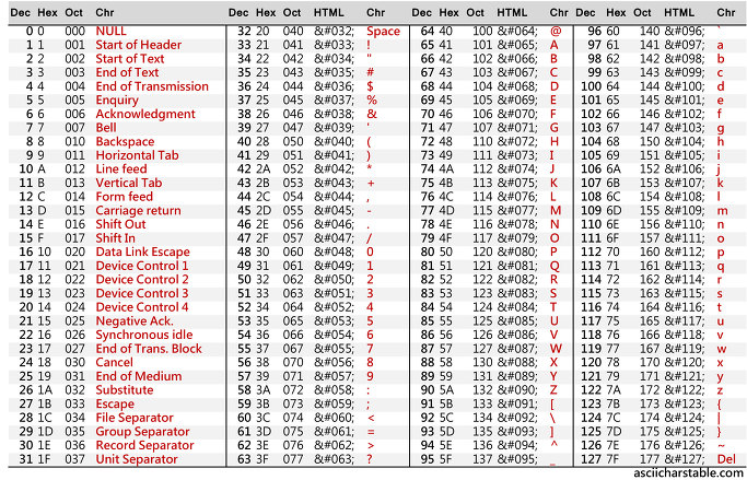 간단하게 설명하자면, 모든 문자에 특정 번호를 매겨 정리해둔 기준이다. 아래표처럼 특정 문자에 문자순으로 숫자값을 매겨뒀기에 문자도 숫자로 바꿔 정렬할 수 있는 것이다.