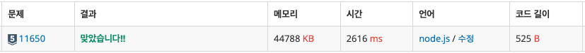 이 역시 객체를 만들 때만 split(' ')으로 인덱스값을 부여했으므로, 1번째 방법보다 시간 효율이 나아졌다.