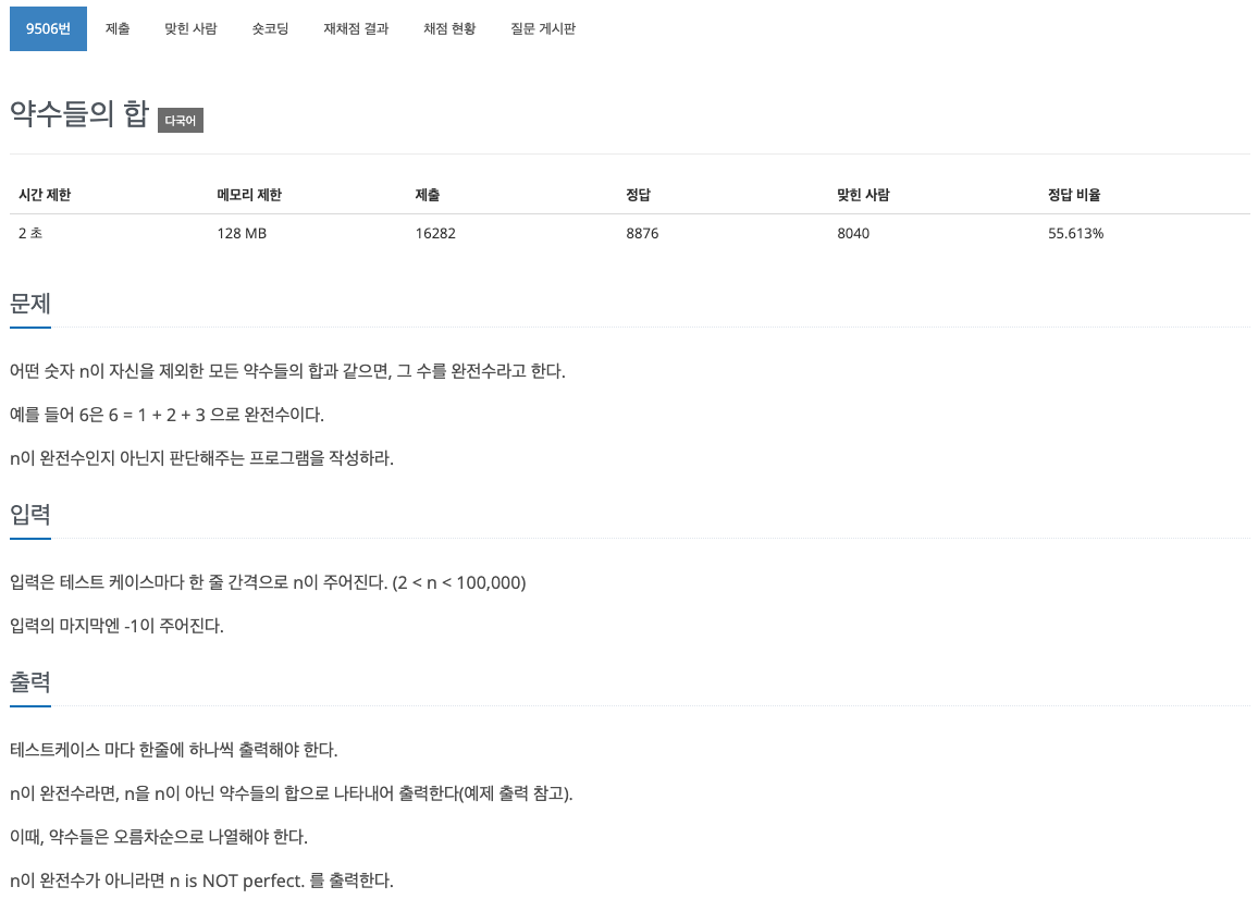 약수 와 완전수 에 대한 이해가 있다면, 충분히 풀 수 있는 문제다.