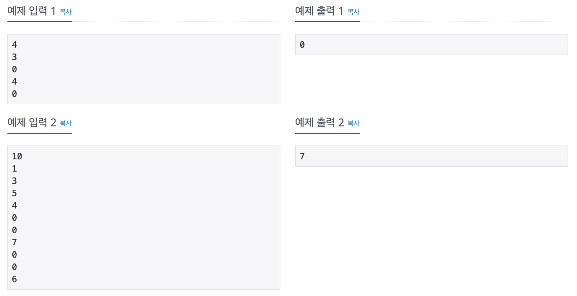 - 배열 numbers을 돌면서 그 수가 0이 아닐 경우엔 stack에 넣어주고(push), 0일 경우에는 0 직전에 잘못된 숫자가 stack에 들어갔기에 빼준다(pop)