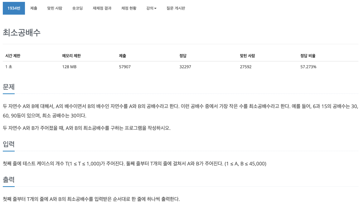 - 각 A, B의 최소공배수를 구해 출력해준다.