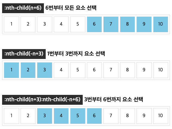 <h3 class="title"><span class="amp">:nth-child(6)</span>6번째 요소 선택</h3>