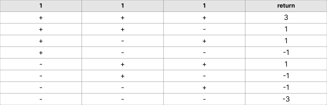 1이 3개가 주어지고, 타겟 넘버가 3일때, 타겟 넘버가 될 수 있는 경우의 수는 세 가지다.