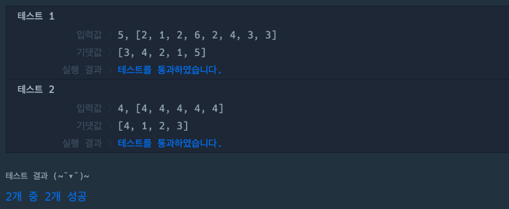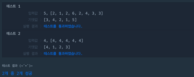 - 실패율이 높은 순서대로 스테이지 번호를 담아 배열로 출력해주면 된다.