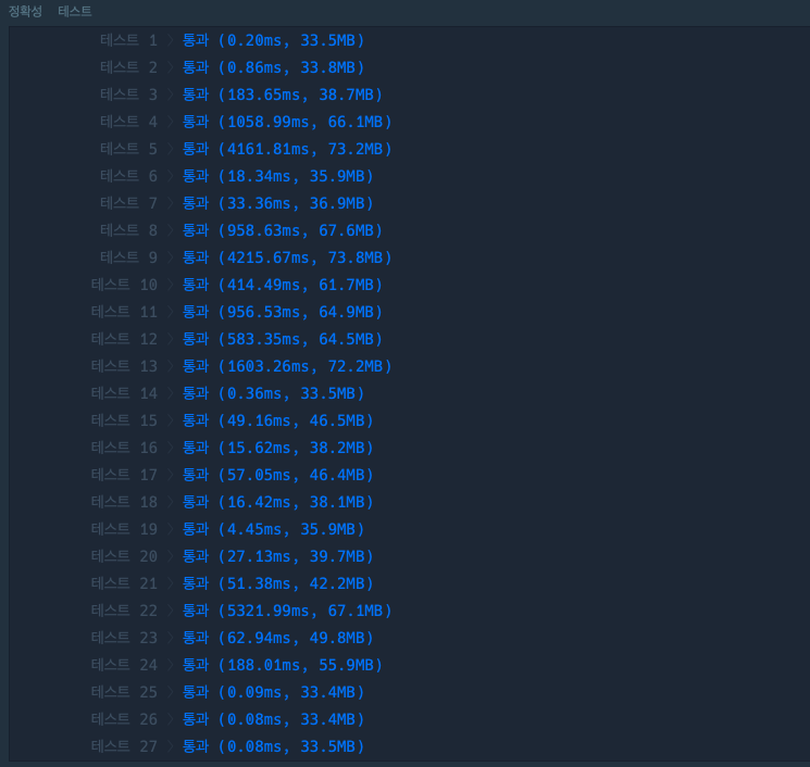 실행 결과와 채점 결과는 다음과 같다.