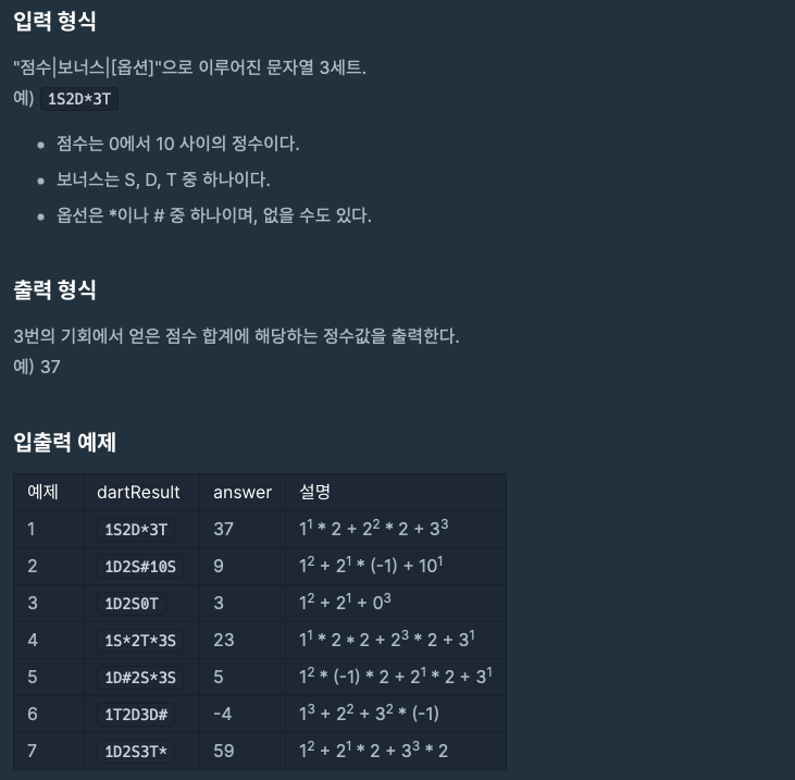 [프로그래머스] 다트 게임 본문